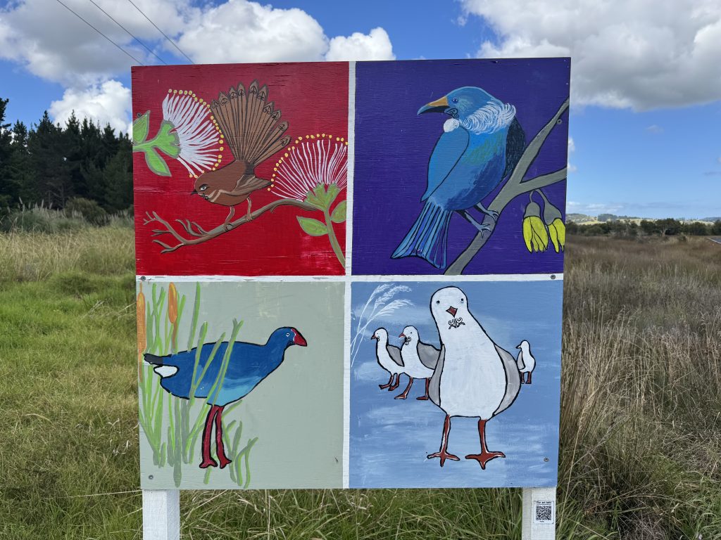 Kowhai putiputi (flowers), the shy Pukeko hidden amongst Raupo and the